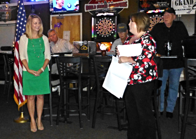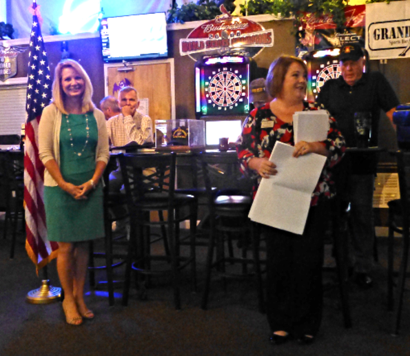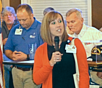 Mary Ann Meyer of Delmar Gardens and Kelly Guenther of American Eagle Credit Union provided information about the upcoming Veterans Day Celebration at the Delmar Gardens of Meramec Valley facility on November 11th. Reservations are required to attend the breakfast.