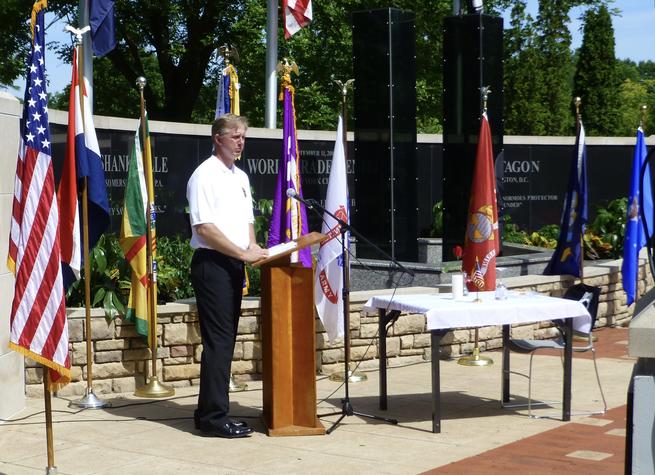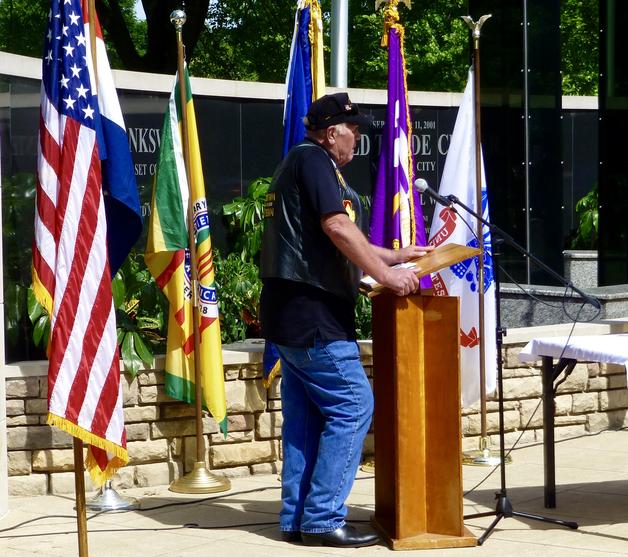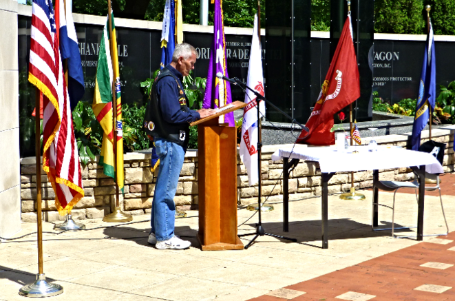 Tom Brophy narrates the POW / MIA missing man table remembrance ceremony.