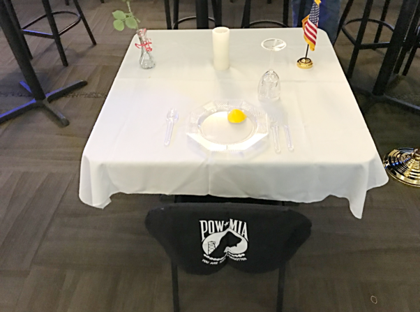 In honor of National POW / MIA Recognition Day, the Chapter displayed the Missing Man Table and Treasurer Tom Brophy recited the Missing Man narrative.