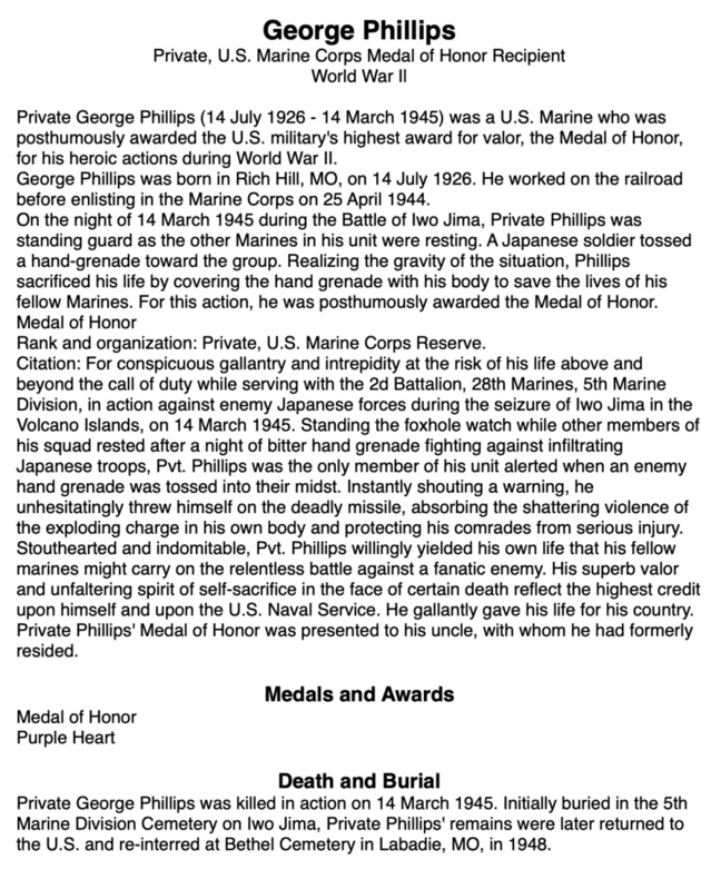 On July 15th, the Chapter provided the Honor Guard for the Marine Corps League's annual salute to Medal of Honor recipient George Phillips at the Bethel Cemetery in Labadie, Mo