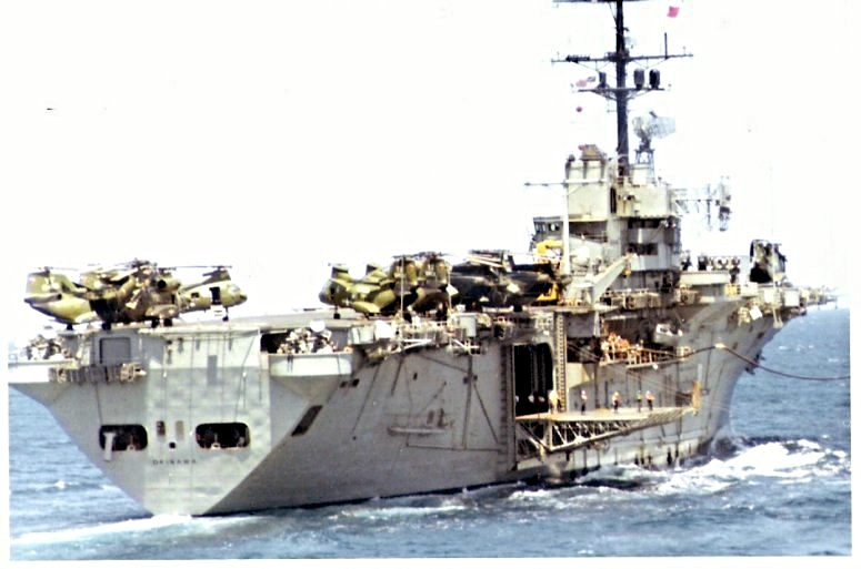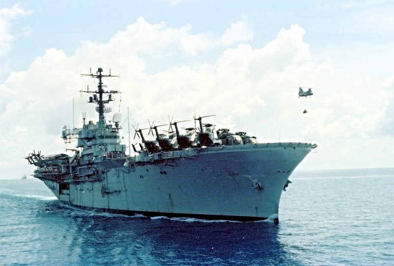 In 1975 as Saigon fell, the U.S.S. Okinawa assisted in the evacuation of fleeing Vietnamese. To make room on deck, abandoned aircraft were thrown overboard.